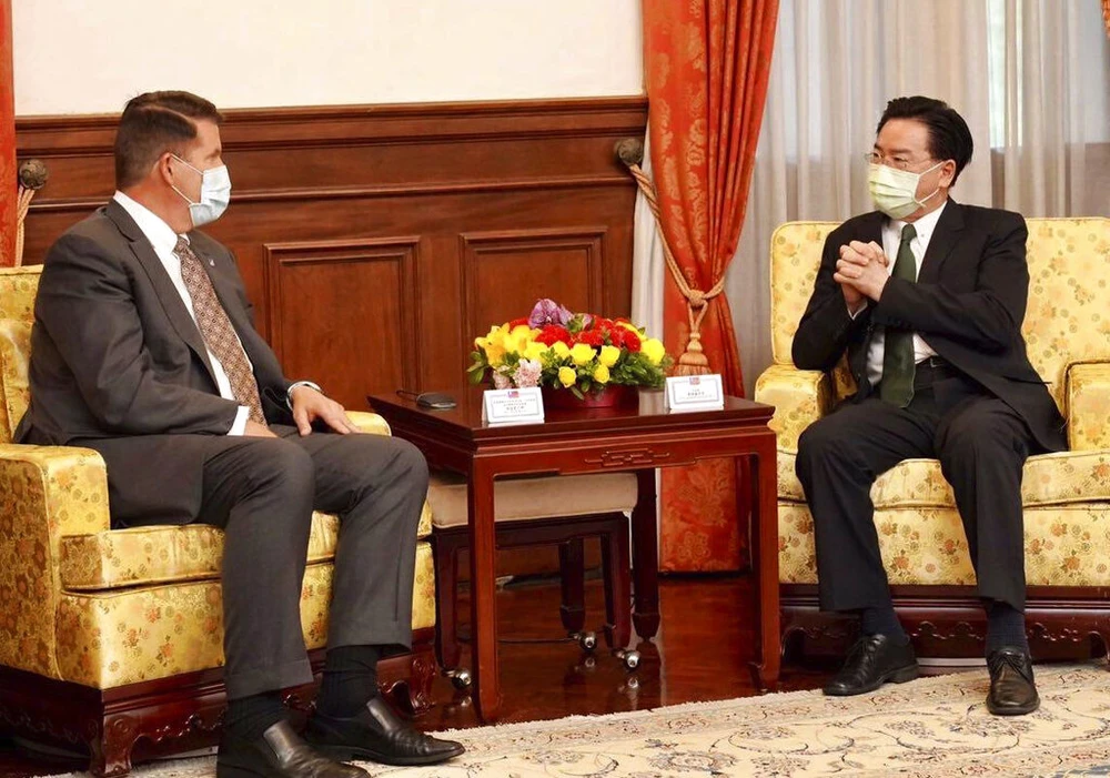 Người đứng đầu Cơ quan Đối ngoại Đài Loan Joseph Wu (phải) gặp Thứ trưởng Ngoại giao Mỹ Keith Krach hôm 18-9. Ảnh: AP