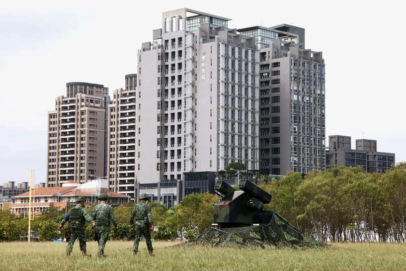 Các binh sĩ làm nhiệm vụ tại Tân Trúc, Đài Loan, ngày 29-10. Ảnh: REUTERS