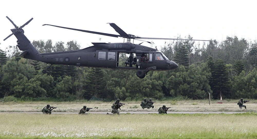 Một chiếc trực thăng UH-60M trong cuộc tập trận thường niên ở đảo Bành Hồ, Đài Loan ngày 25-5-2017. Ảnh: AP