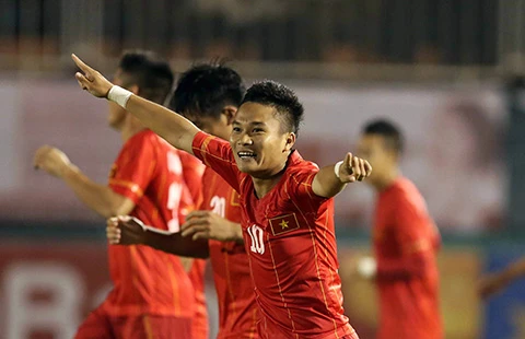 Phi Sơn, cầu thủ vào sân từ ghế dự bị đã có bàn quyết định từ cú sút “tẹt cơ”. Ảnh: CTV