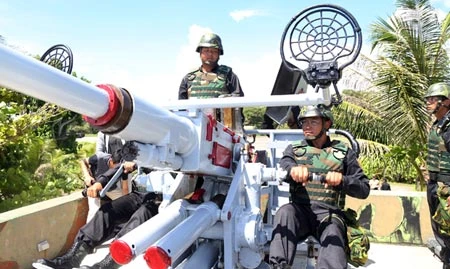 Cảnh sát biển Đài Loan tiến hành tập trận trái phép trên đảo Ba Bình của Việt Nam hôm 5-11-2014 (Ảnh: CNA)