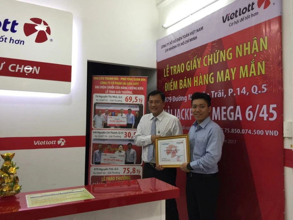 Ông Lưu Thanh Hải, Phó Tổng Giám đốc Sài Gòn Lott, cho biết trong 13 giải Jackpot của Vietlott tính đến nay, điểm bán thuộc Sài Gòn Lott đã ba lần bán vé trúng Jackpot.