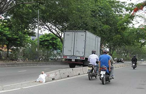Lâu ngày cọc nhựa phản quang này bị gãy mất, người dân phải lấy mảnh nhựa bao bọc lại để cảnh báo nguy hiểm (ảnh). Tuy nhiên, thời gian qua đã xảy ra nhiều vụ người đi xe máy tông dải phân cách này ngã nhào, bị thương tích. Đề nghị cơ quan chức năng kiểm tra, xử lý để đảm bảo an toàn giao thông cho người qua lại.