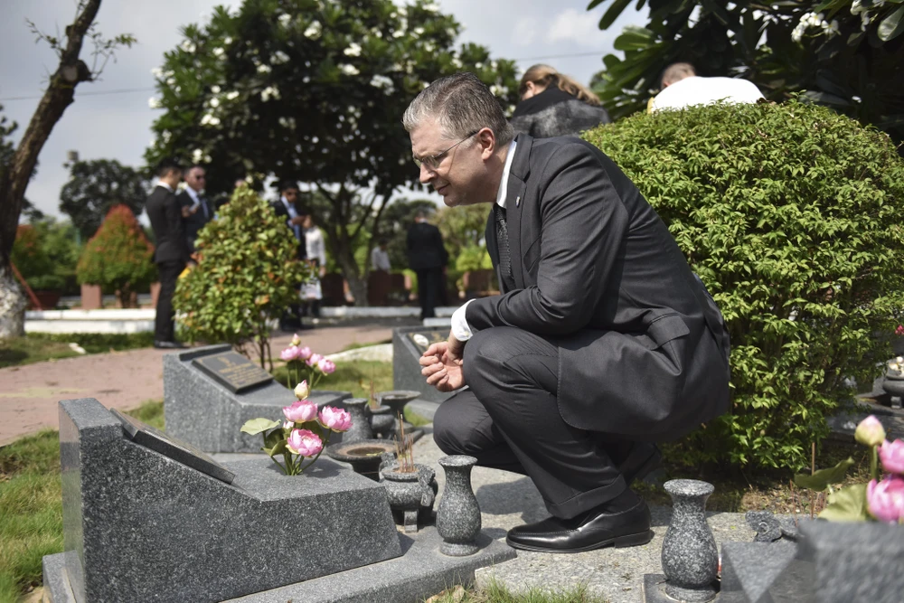 Đại sứ Daniel Kritenbrink đến thăm Nghĩa trang Liệt sĩ TP.HCM hôm 21-6. Ảnh: American Center HCMC