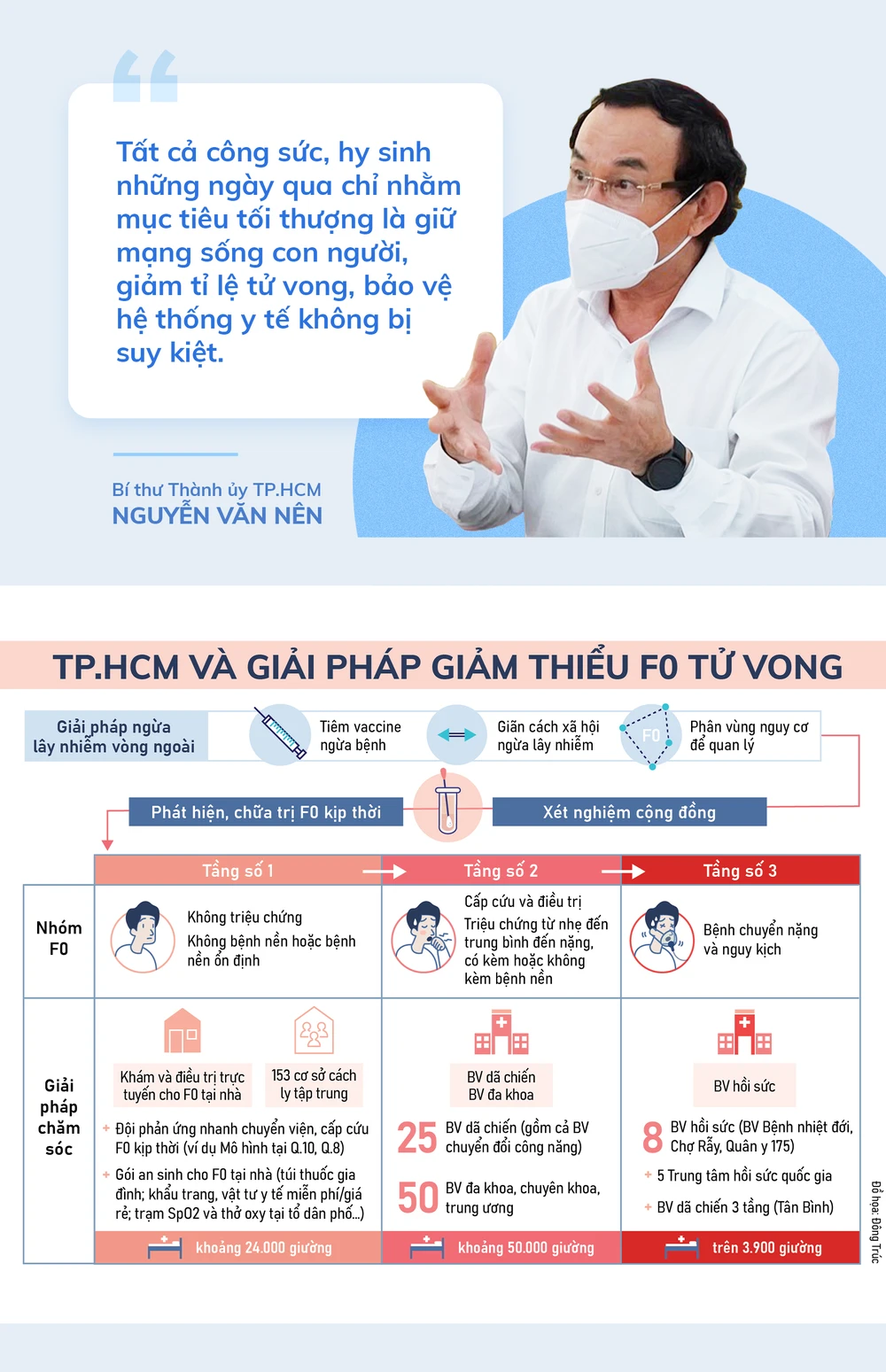 Ưu tiên số một là hệ thống y tế, các y bác sĩ tuyến đầu, quân đội công an – những người phải được bảo vệ tối đa (ưu tiên vaccine, đồ bảo hộ,…). Sau đó, chính là người già, có bệnh nền để họ không trở nặng, gây quá tải y tế.