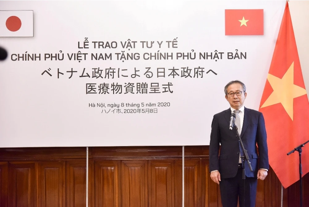 Theo thông tin từ Bộ Ngoại giao Việt Nam, chiều 8-5, tại trụ sở Bộ Ngoại giao, Thứ trưởng Ngoại giao Lê Hoài Trung đã trao tượng trưng 140.000 khẩu trang y tế, là đợt hỗ trợ vật tư y tế mới của Chính phủ Việt Nam cho chính phủ và nhân dân Nhật Bản.