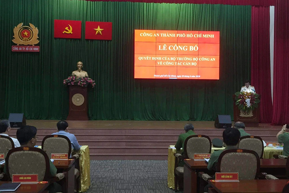 Đồng thời cũng công bố quyết định của Bộ trưởng Bộ Công an về việc nghỉ công tác chờ đến tuổi nghỉ hưu đối với Trung tướng Lê Đông Phong, Giám đốc Công an TP.HCM.
