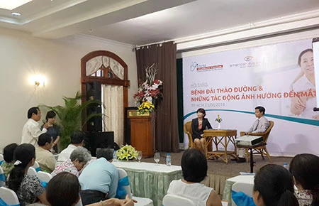 BS Phan Hữu Tú, CK1 Nội tiết, Phòng khám Quốc tế Victoria Healthcare Mỹ Mỹ, trình bày về chẩn đoán và điều trị bệnh lý đái tháo đường và BS Phạm Hồng Nam Trân, Giám đốc Y khoa Phòng khám chuyên khoa Mắt American Eye Center Việt Nam, giới thiệu chẩn đoán và điều trị bệnh lý võng mạc đái tháo đường.