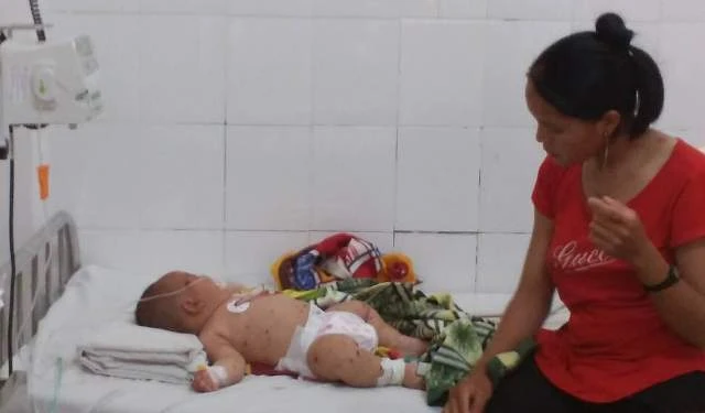 ThS-BS Lê Đình Nhân, Phó Trưởng khoa HSCC Nhi-Nhi sơ sinh, BV Đa khoa tỉnh Đắk Lắk, cho biết: Vào lúc 9 giờ ngày 8-3, khoa có tiếp nhận bệnh nhân nhập viện trong tình trạng sốt li bì, toàn thân xuất hiện nhiều vết tử ban, có hiện tượng co giật, phổi bị tổn thương.