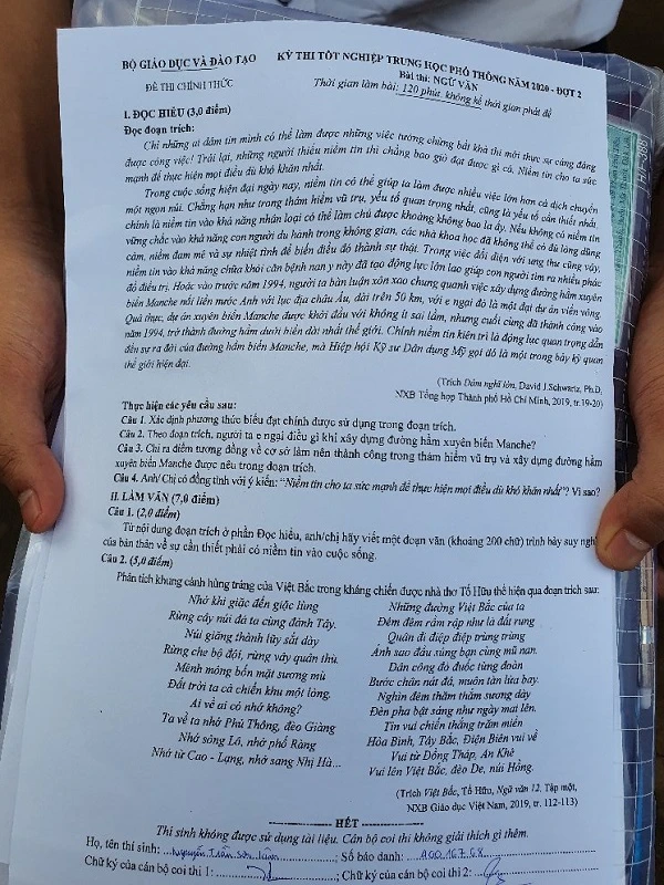 Chia sẻ sau buổi thi, em Hoàng Yến Nhi (điểm thi Trường THPT Hồng Đức), cho biết đề thi lần này tương đối dễ so với đợt 1. Em thấy đề ra nghị luận về lòng tin cũng khá hay, học sinh có thể lấy những dẫn chứng về lòng tin của bản thân để vượt qua những khó khăn, những trải nghiệm trong cuộc sống. Nhi thấy mình làm tốt khoảng 50-70% bài thi với số điểm khoảng 6-7 điểm.