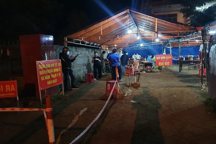 Tại các chốt kiểm dịch, mỗi ngày có hàng ngàn người về và khai báo y tế. Ảnh QN