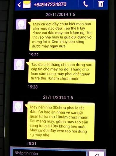 Một loạt tin nhắn từ những số máy lạ gửi dọa giết người dân tố cáo và các nhà báo viết bài liên quan đến tiêu cực tại Công an huyện Cư Kuin