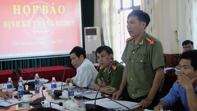 Đại tá Nguyễn Văn Quy – Trưởng phòng Tham mưu, Công an tỉnh Đắk Lắk công bố hình thức kỷ luật các cán bộ Công an huyện Cư Kuin tại cuộc họp báo