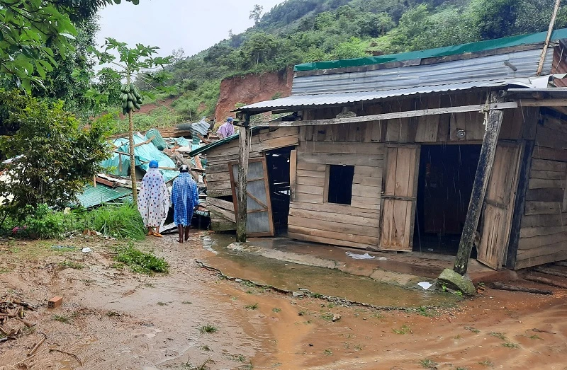 Mưa lớn, sạt lở khiến nhà dân bị sập.