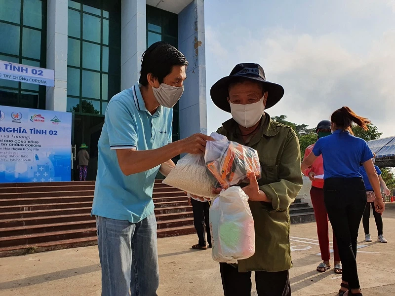 Máy phát gạo được đặt tại Trung tâm văn hóa huyện Krông Pắk. Ngay từ sáng sớm, nhiều người đã đến xếp hàng để đợi nhận gạo. Tại đây, mỗi người được nhận 3 kg gạo, rau, bầu bí và mì tôm. Đa số người đến nhận gạo là người đồng bào thiểu số, có hoàn cảnh vô cùng khó khăn.
