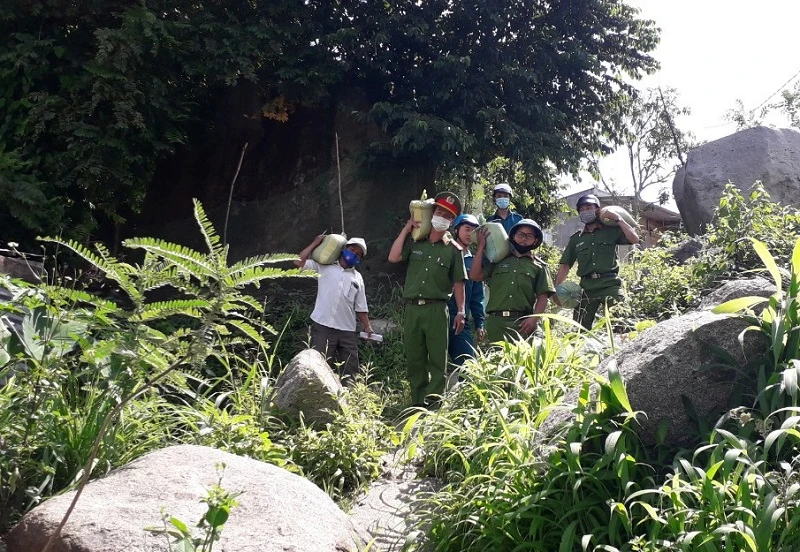 Công an Đắk Nông mang gạo đến hỗ trợ cho người dân khó khăn vùng sâu vùng xa.