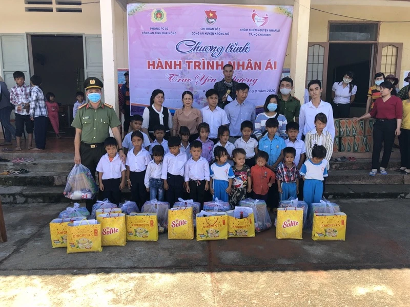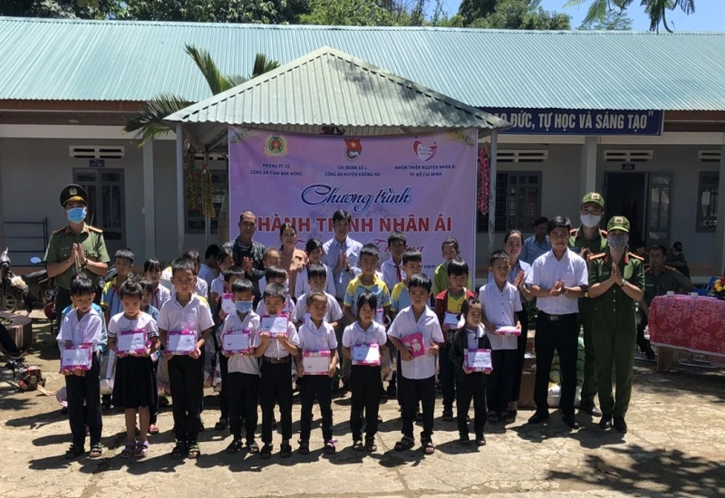 Ngày 11-9, Công an huyện Krông Nô (tỉnh Đắk Nông) đã phối hợp với Chi đoàn Phòng Cảnh sát hình sự Công an tỉnh và nhóm Thiện nguyện Nhân ái TP.HCM tổ chức chương trình “Hành trình nhân ái” tại Trường Tiểu học Nguyễn Văn Bé (xã Đức Xuyên) và Trường Tiểu học Bế Văn Đàn (phân hiệu tại thôn Phú Hoà và Phú Vinh, xã Quảng Phú).