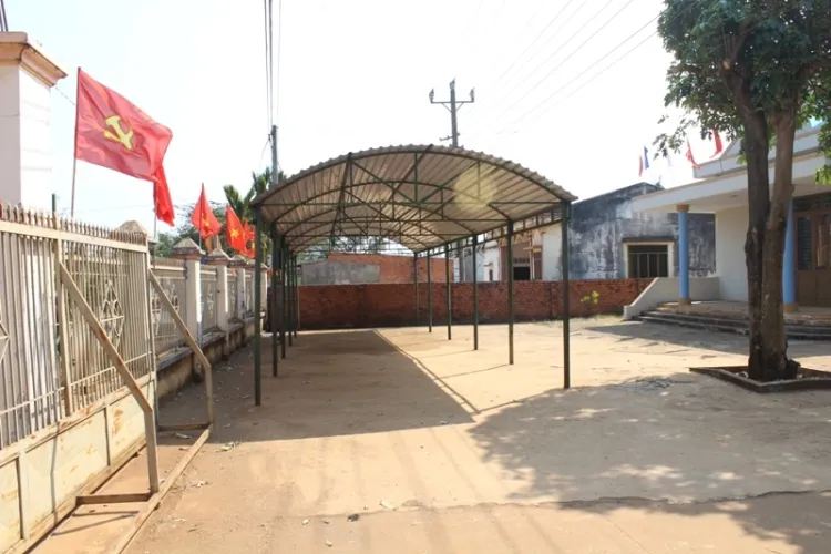 Nhà xe cán bộ xã Đạo Nghĩa không một bóng người, bóng xe dù trong giờ làm việc.