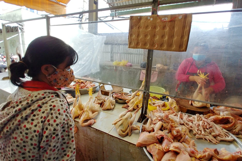 Người dân mua hàng tại chợ Ngã Ba Bầu, phường Tân Chánh Hiệp, quận 12. Ảnh: HOÀNG GIANG