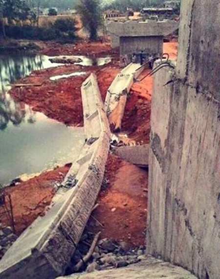 Vào lúc 10 giờ 30 ngày 20-3, đơn vị thi công (Công ty CP Xây dựng và Thương mại Hà Khánh) tự ý triển khai lắp đặt xong cố định dầm số 1. Khoảng 15 giờ 30 cùng ngày, đơn vị thi công tổ chức lắp đặt phiến dầm số 2. Sau khi dầm số 2 được đặt định vị cố định lên các gối kê cao su thì hơn 20 phút sau, xảy ra hiện tượng phiến dầm số 2 được đặt định vị cố định lên các gối kê cao su đổ vào phiến dầm 1. Hai phiến dầm bị văng khỏi các xà mũ, rơi xuống suối.