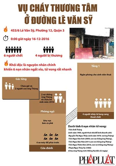 Đến chiều 16-12, lực lượng chức năng mới hoàn tất việc khám nghiệm hiện trường vụ cháy căn nhà trong một con hẻm rộng trên đường Lê Văn Sỹ ở phường 12, quận 3, TP.HCM lúc 0 giờ cùng ngày khiến sáu người trong một gia đình tử vong.