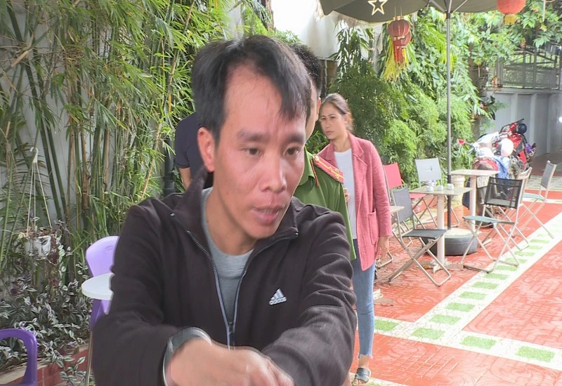 Đỗ Viết Dương lúc thực nghiệm hiện trường vụ án. Ảnh AĐ