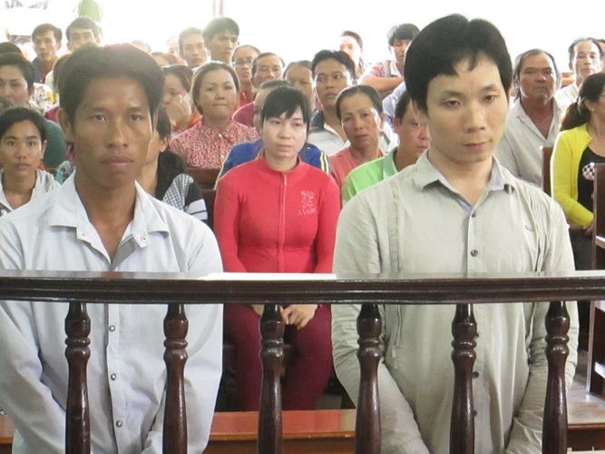 Hai bị cáo Tiến (bên phải) và Em nghe tòa tuyên án ngày 21-5. Ảnh: N.NAM