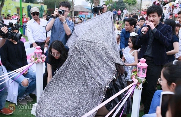 Anh Vượng đã tiến lại gần, bế cô dâu trên tay trong tiếng hò reo của hàng trăm vị khách.