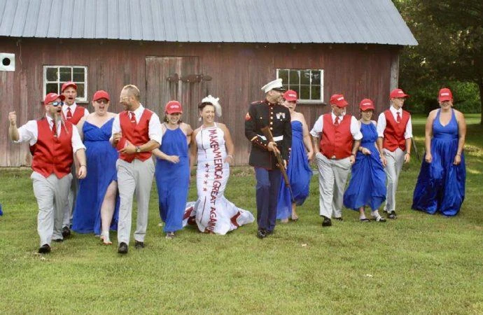 Dù chủ đề vinh danh Trump, cặp vợ chồng chào đón tất cả mọi người cùng đến dự, bao gồm những người theo đảng Dân chủ. Họ đều đội chiếc mũ màu đỏ đặc trưng của của Tổng thống Trump với dòng khẩu hiệu trên đó. Tuy nhiên, một số khách mời không thích đã từ chối đội chiếc mũ. Thậm chí, bố chú rể cũng không tới đám cưới vì ông không ủng hộ ông Trump.