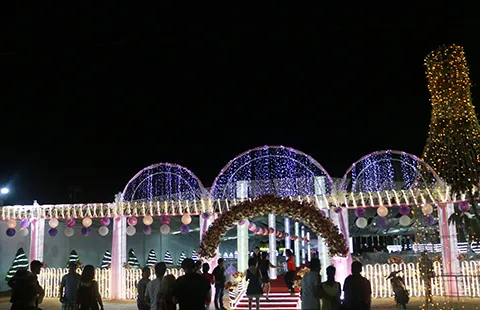 Gia chủ cũng chi mạnh tay để làm rạp hoàn toàn bằng khung sắt chắc chắn, lót thảm đỏ như kiểu xây hẳn một nhà hàng tiệc cưới ngoài trời. Nhiều vật liệu, cùng dàn nhạc, bàn ghế phục vụ đám cưới đều phải thuê từ Sài Gòn về phục vụ cho 1.500 thực khách. Hệ thống đèn phục vụ cho đám cưới đều là đèn led.