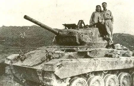 Ông bà Khánh - Toản chụp trên xe tăng ở đồi A1 (tháng 5-1954). Ảnh: Tư liệu