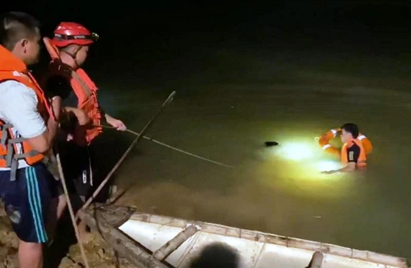 Lực lượng chức năng tổ chức tìm kiếm nạn nhân. Ảnh: H.H