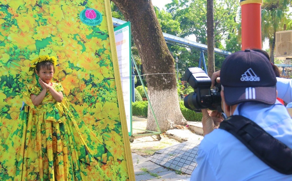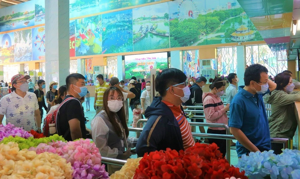Đông đảo người dân đến công viên văn hóa Đầm Sen để vui chơi dịp tết Tây sau những ngày dài nghỉ dịch. Đa số là những phụ huynh dắt theo con nhỏ đến đây tham quan, ngắm cảnh, dã ngoại.
