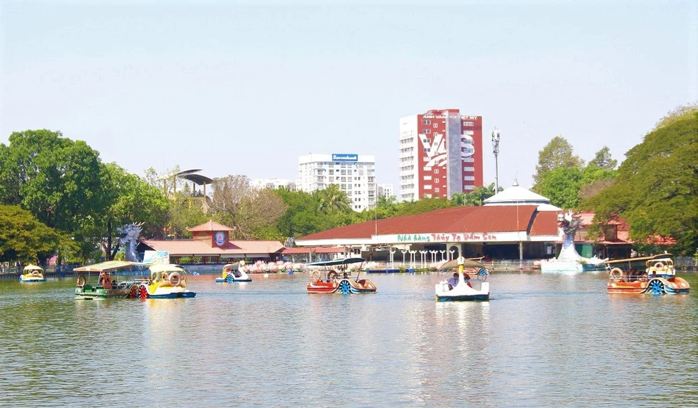 Đầm Sen đông khách những ngày đầu năm. Ảnh: THẢO PHƯƠNG