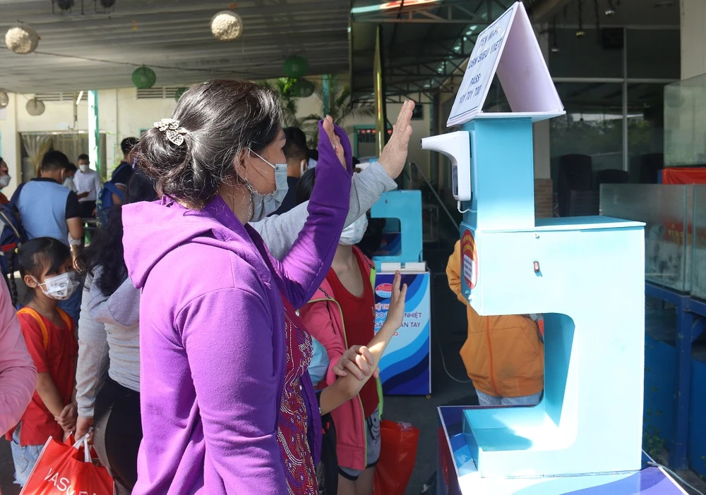 Người dân rửa tay sát khuẩn để đảm bảo an toàn trong tình hình dịch bệnh. Ảnh: THẢO PHƯƠNG