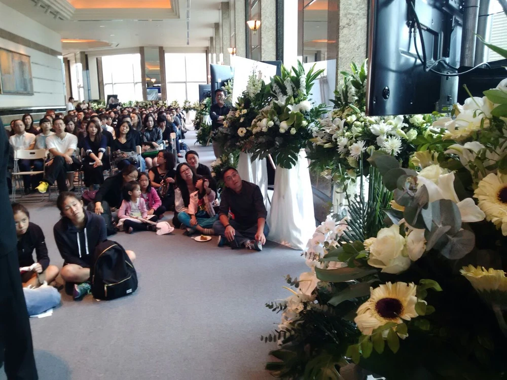 Đông đảo người dân đã xếp hàng dưới đường từ 8 giờ sáng, mang theo ô dù để có thể tránh cơn mưa rất lớn. Đại bác đã được bắn vang rền lẫn trong tiếng mưa khi lễ đưa tang bắt đầu lúc 12 giờ 30.