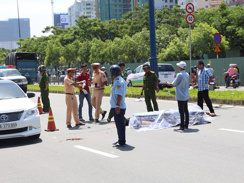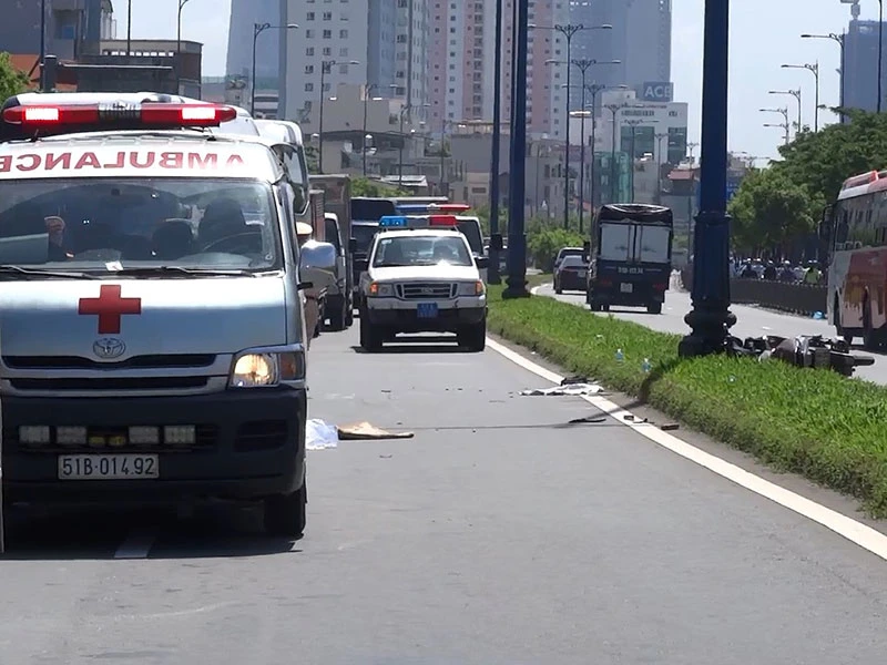 Tại hiện trường, thi thể nạn nhân nằm trên làn đường ô tô ở hướng ngược lại, xe máy nằm trên dải phân cách, xe tải dừng cách đó vài chục mét. Vụ tai nạn khiến giao thông trên đại lộ Võ Văn Kiệt ùn xe kéo dài.