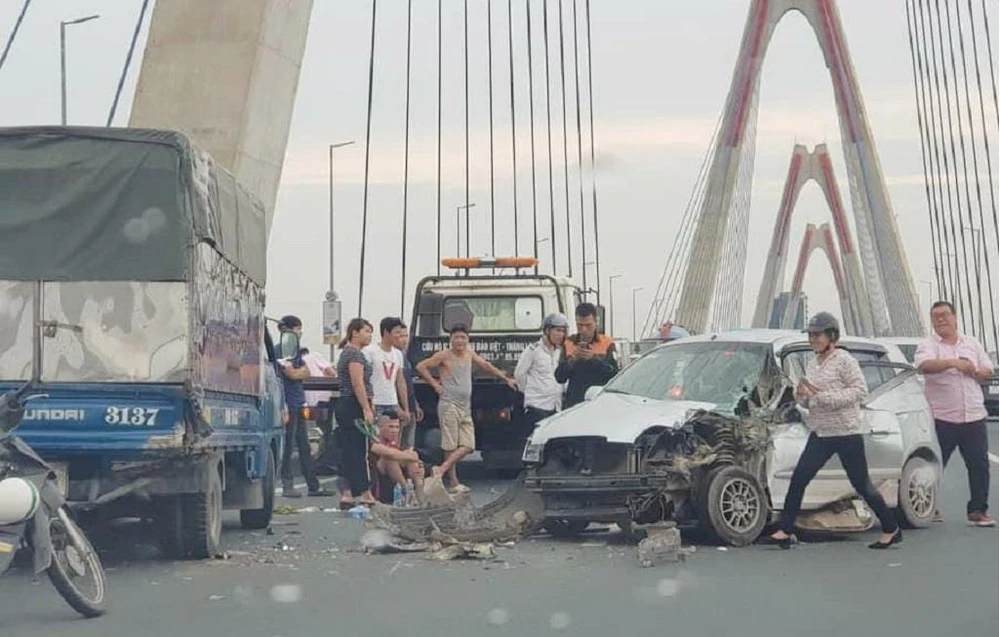Hiện trường vụ tai nạn trên cầu Nhật Tân. Ảnh: Facebook