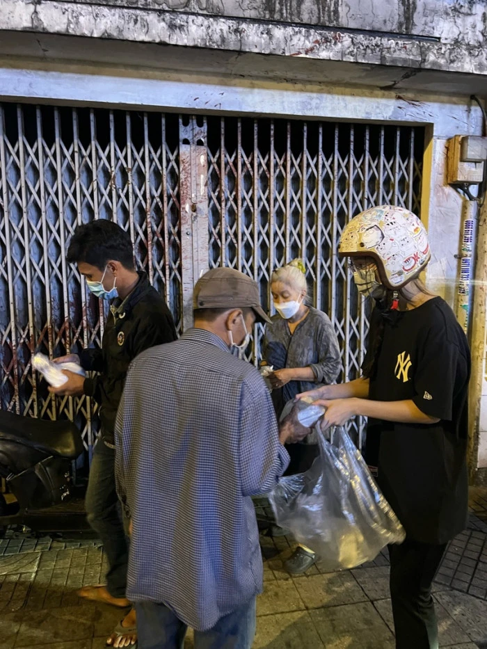 Trong chương trình thiện nguyện mới đây, á hậu Phương Nhi đã chạy xe máy qua nhiều cung đường nhỏ để tặng đồ ăn, quà đến những người khó khăn, vô gia cư trên địa bàn TP. HCM.