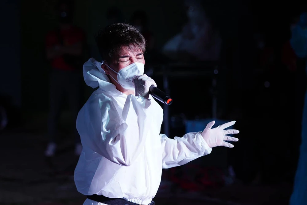 Ca sĩ Đàm Vĩnh Hưng mang âm nhạc đến bệnh viện dã chiến. Ảnh: FBNV
