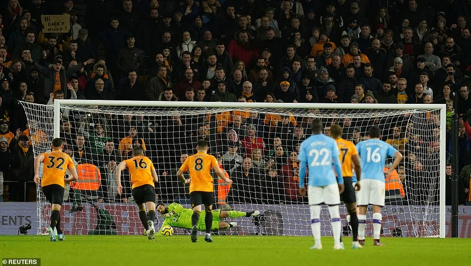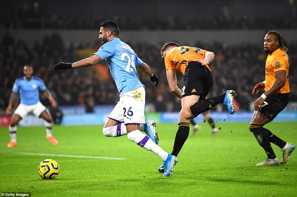 Phút 82, hậu vệ cánh Benjamin Mendy phòng ngự cẩu thả trong vòng cấm, để cho Adama Traore dễ dàng cướp được bóng rồi căng ngang cho trung phong Raul Jimenez băng vào đệm bóng cận thành gỡ hòa 2-2 cho Wolverhampton.