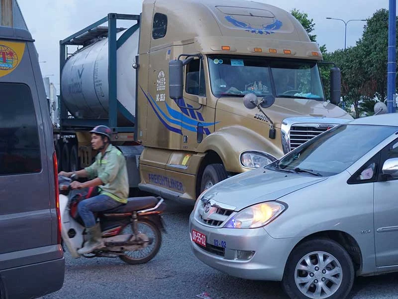 Ngoài ra, nguy hiểm luôn rình rập đối với người điều khiển xe máy khi luồn lách giữa dòng xe container, xe tải rẽ trái qua cao tốc TP.HCM - Long Thành - Dầu Giây. Em Phạm Thị Thanh Hằng (ngụ đường Nguyễn Duy Trinh) chia sẻ: “Mỗi lần qua đây em sợ lắm, có lần vào giờ cao điểm kẹt xe, em lọt thỏm vào dòng xe container đi không được, lùi cũng không xong. Qua lần đó em hú vía, không đi qua khúc đó nữa mà chạy thẳng qua đường Lương Định Của rồi quẹo lại”.