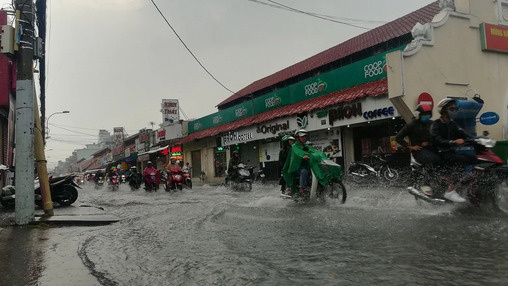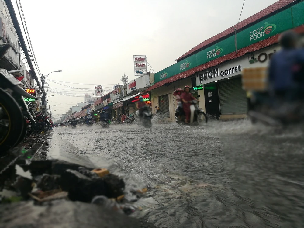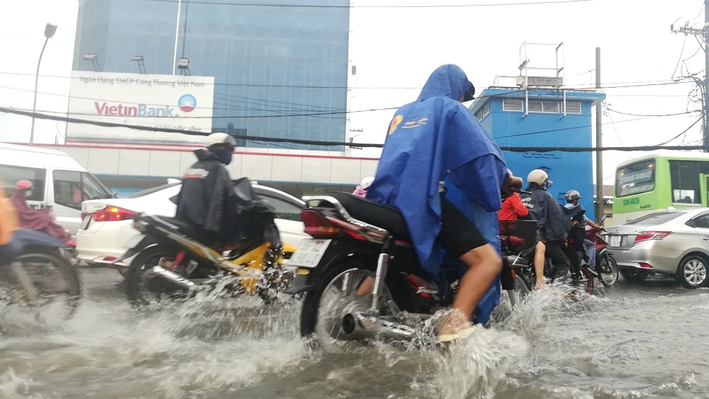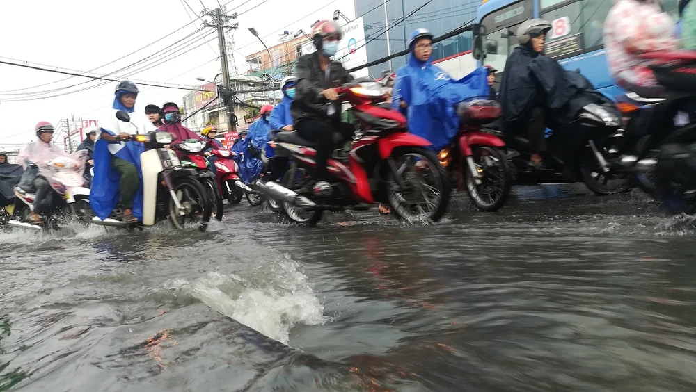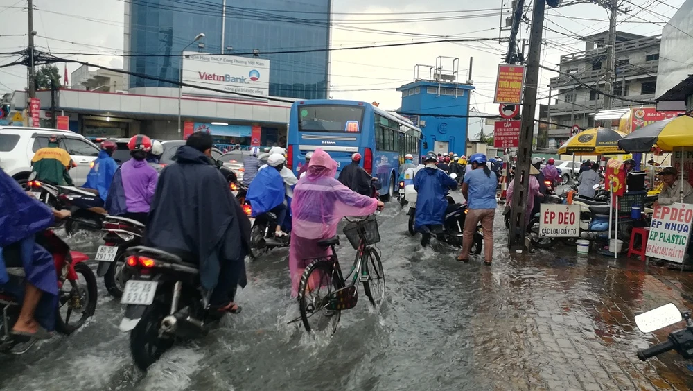 Chiều nay (7-9), sau cơn mưa kéo dài từ 16 giờ 30 phút đến hơn 17 giờ, người dân di chuyển qua khu vực đường Kha Vạn Cân (đoạn gần vòng xoay chợ Thủ Đức) lại phải bì bõm lội nước về nhà. Nhiều xe đã bị chết máy, người dân phải dắt bộ, tắt máy đứng đợi hết mưa rồi đi tiếp.