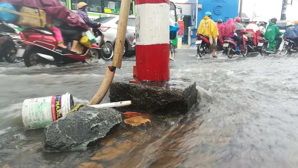 Khu vực đường Kha Vạn Cân, hướng về chợ Thủ Đức thấp hơn so với một số tuyến đường xung quanh nên mỗi khi mưa xuống, nước đổ về gây tình trạng ngập.