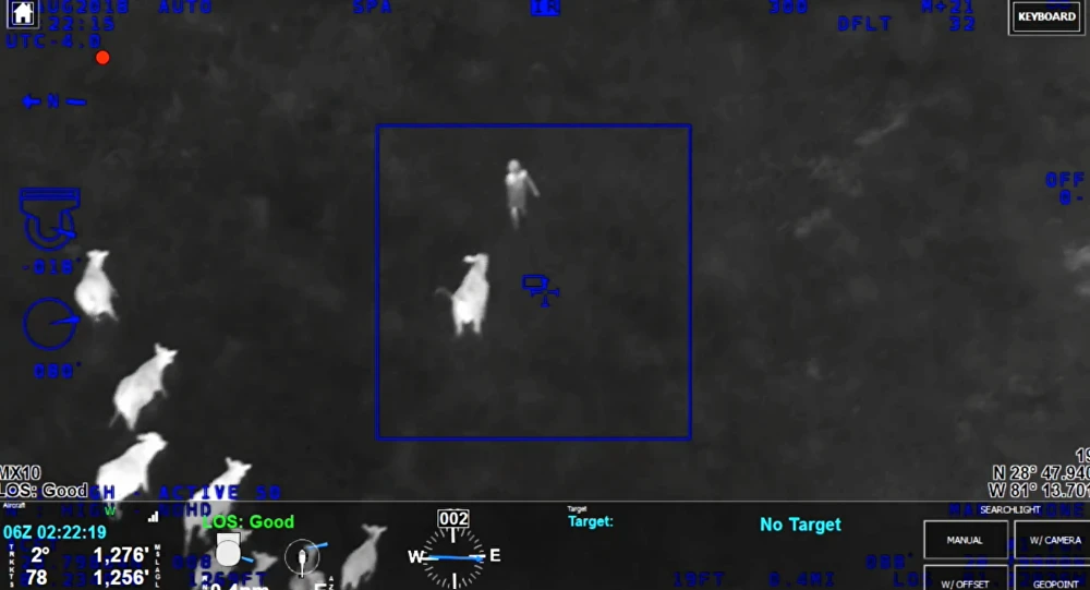 Nhân viên lái máy bay trực thăng cho hay: “Đàn gia súc khổng lồ bám theo tên tội phạm đã tạo ra lợi thế quan sát rất tốt.
