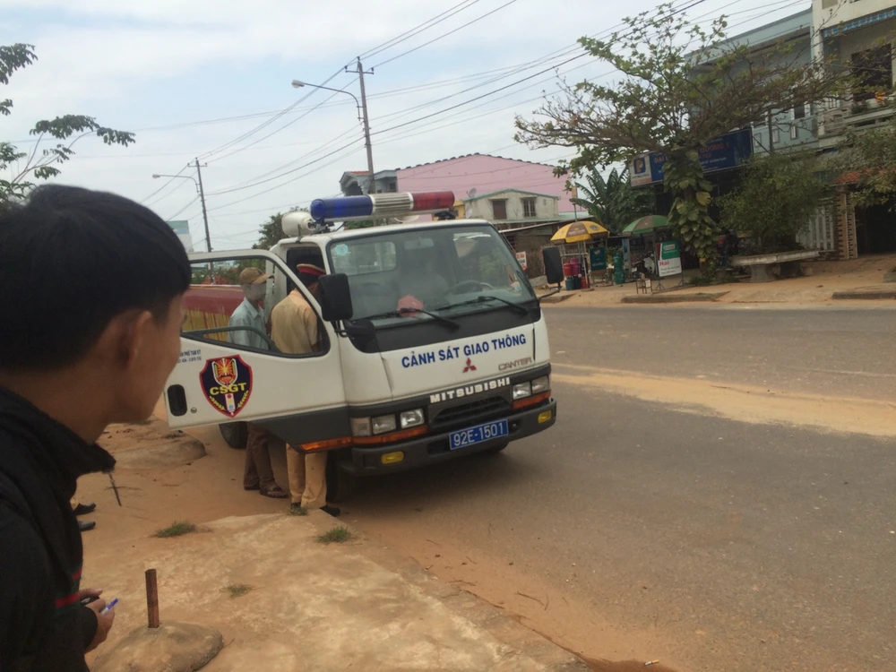 Cơ quan chức năng đang tiến hành lập biên bản làm việc với các xe bị chặn. Ảnh: Quang Nam