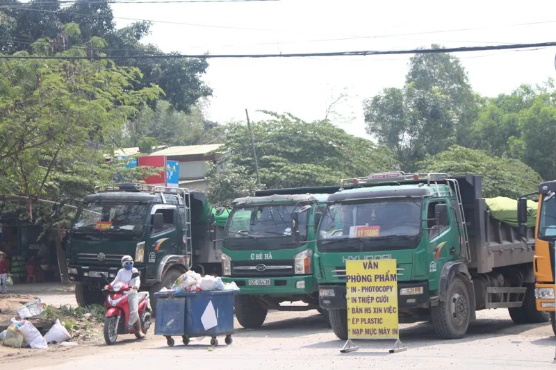 “Xe tải chạy liên tục khiến bụi bay mù mịt tấp vào nhà dân, nhà cửa và hàng quán không thể buôn bán được. Cứ như thế này thì dân sống sao nổi” - một người dân sống gần đó bức xúc nói.