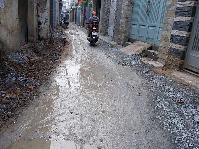 Đoạn đường số 1 (phường 4, quận Gò Vấp) được nâng cấp bốn tháng vẫn chưa xong. Ảnh: ĐÀO TRANG