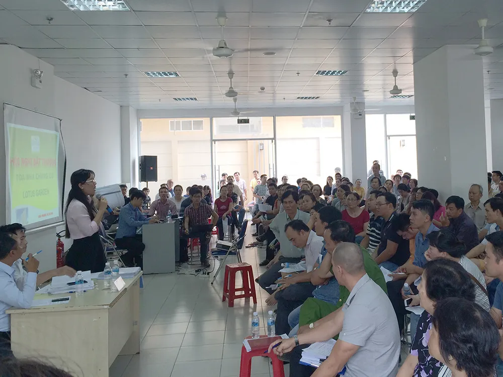 Hội nghị bất thường nhà chung cư Lotus Garden (phường Hòa Thạnh, quận Tân Phú) được tổ chức vào ngày 16-10, thu hút đông đảo người dân tham gia.