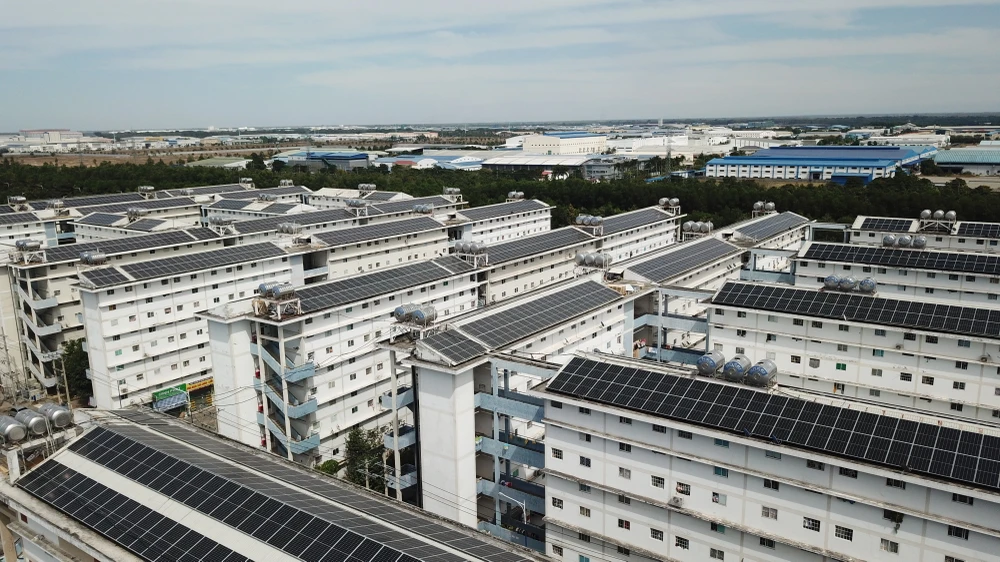 Theo ghi nhận, gần như toàn bộ mái nhà của khu nhà này đã hoàn thành việc lắp đặt hệ thống năng lượng mặt trời.